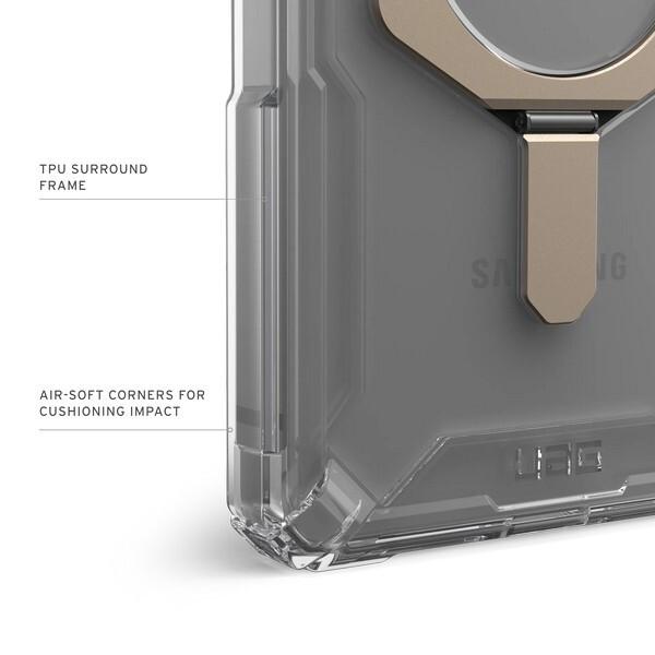 Чехол UAG Plasma XTE MagSafe для Samsung Galaxy S25 Ultra прозрачный/титан (Clear/Titanium) (214467114G36) сочетает в себе передовой дизайн и функциональность. Он оснащен встроенной металлической подставкой, которая позволяет легко переключаться между ландшафтным и портретным режимами для удобного просмотра видео, видеозвонков и фотосъемки без помощи рук. Легкий композитный корпус обеспечивает изящный профиль, не жертвуя прочностью, а усиленные углы с технологией air-soft смягчают удары при падениях. Приподнятый бортик вокруг экрана добавляет дополнительный уровень защиты от царапин и повреждений.