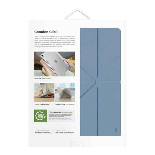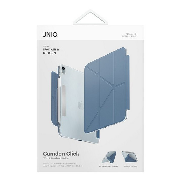 Чехол Uniq Camden Click для iPad Air 11'' (2024) Stone Blue (PDA11(2024)-CAMSBLU) выполнен в удобной форме книжки. Защищает устройство со всех сторон, оставляя при этом свободный доступ к портам, разъемам и камере. Прозрачный корпус с матовой задней панелью оснащен специальным отсеком на магните и обеспечивает легкий доступ к стилусу Apple Pencil или Pixo с одновременной зарядкой. Крышка выполнена из современного и приятного на ощупь материала – эко-кожи. Мягкая подкладка внутри чехла защитит экран планшета от царапин и загрязнений. Легко складывается в удобную подставку, как для набора текста, так и для просмотра видео.