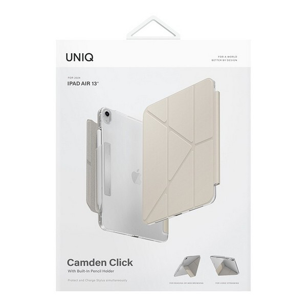 Чехол Uniq Camden Click для iPad Air 13'' (2024) Ivory (PDA13(2024)-CAMIVY) - тонкий и легкий чехол, выполненный в удобной форме книжки. Защищает устройство со всех сторон, оставляя при этом свободный доступ к портам, разъемам и камере. Прозрачный корпус с матовой задней панелью оснащен специальным отсеком на магните и обеспечивает легкий доступ к стилусу Apple Pencil или Pixo с одновременной зарядкой. Крышка выполнена из современного и приятного на ощупь материала – эко-кожи. Мягкая подкладка внутри чехла защитит экран планшета от царапин и загрязнений. Легко складывается в удобную подставку, как для набора текста, так и для просмотра видео.