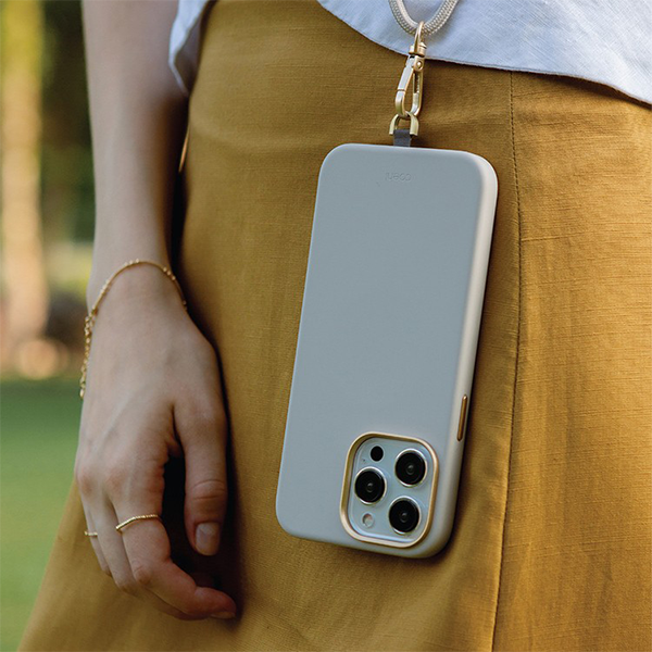 Элегантный чехол COEHL CREME выполнен в удобной форме накладки, надежно крепится, учитывает все конструктивные особенности телефона. Шелковистый корпус из мягкого силикона премиум-класса приятен на ощупь, не скользит в руке. Высококачественное soft touch покрытие препятствуют образованию следов пыли и отпечатков пальцев. Внутренняя подкладка из микрофибры защищает смартфон от царапин. Дизайн дополнен металлическими боковыми кнопками и рамкой камеры. В корпус встроены магниты для надежного сцепления с устройствами MagSafe. Съемный шнурок в комплекте позволяет носить айфон не только в сумочке или кармане.