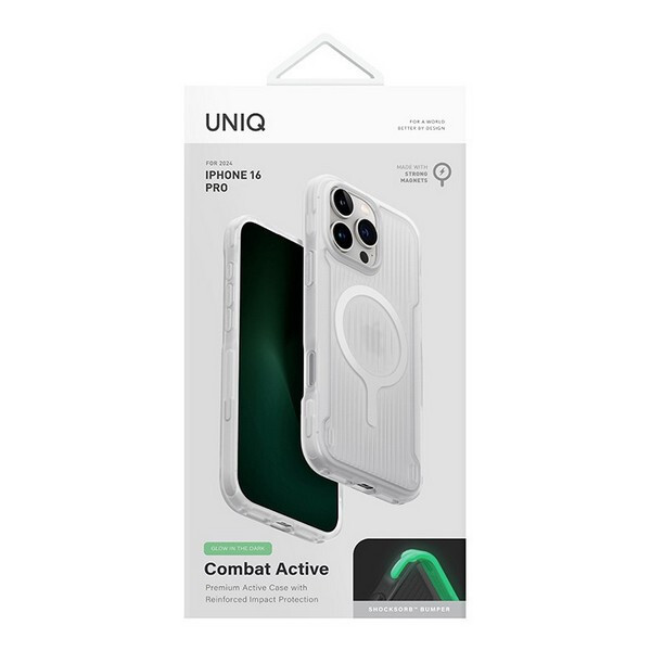 Чехол Uniq Combat Active MagSafe для iPhone 16 Pro Lume-White (IP6.3P(2024)-COMAMLWHT) с экстремально усиленной защитой углов разработан для людей, ведущих активный образ жизни. Аксессуар устойчив к ударам и способен выдержать падение с высоты до 4 метров, что сравнимо с защитой от падений военного уровня (MIL-STD 810-560.6). Технология ShockSorb защищает телефон от сколов, царапин и прочих повреждений. Бампер усилен специальными рёбрами, которые амортизируют удары, по углам предусмотрены специальные воздушные камеры. На внутренней стороне изделия расположена невидимая перфорированная сетка, которая предотвращает появление конденсата и помогает избежать прилипание задней стенки чехла к смартфону. Клавиши защищены заглушками, интегрированными в чехол - это препятствует попадание частиц мусора, пыли и капель влаги внутрь чехла. Высокие бортики вокруг камеры оберегают объектив от механических дефектов. Благодаря встроенному магниту MagSafe, вы можете использовать другие аксессуары с таким креплением: картхолдеры, зарядки, держатели. Эксклюзивный дизайн со светоотражающими элементами гарантирует, что вы будете видны даже при слабом освещении. Поставляется в фирменной картонной упаковке Uniq.