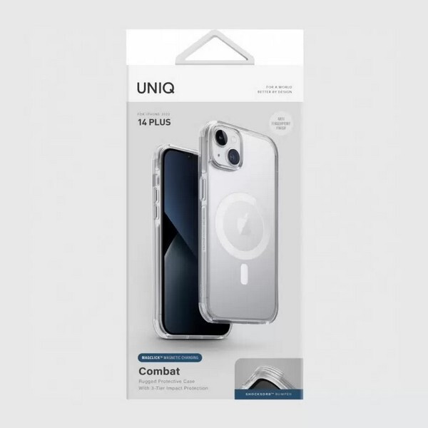 Чехол Uniq Combat AF MagSafe для iPhone 14 Plus (IP6.7M(2022)-COMAFMSCL) Satin Clear - дополните свой стиль элегантным защитным и эффектным аксессуаром. Чехол разработан в удобном формате накладки из высококачественных и прочных материалов. Благодаря этому он обладает высокой износостойкостью, пластичностью, надежностью, прочностью. Защитный кейс легко надевается на корпус гаджета, плотно прилегает к нему, защищает смартфон от ударов, царапин, пыли, грязи и потертостей во время эксплуатации.