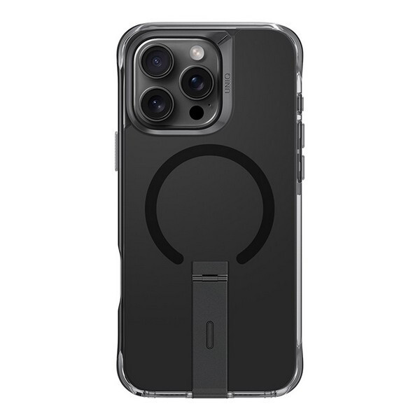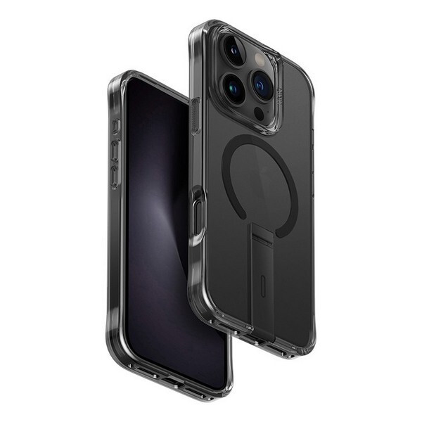 Чехол Uniq Eleva MagSafe для iPhone 16 Pro Black с подставкой (IP6.3P(2024)-ELEVAMBLK) - прочный чехол из пластика и термополиуретана с приподнятыми углами AirLite™ и встроенной алюминиевой подставкой. Выдерживает падение с высоты до 2.5 метров. Приподнятые бортики вокруг экрана и камеры защищают дисплей и объектив. Изделие плотно прилегает к телефону и гарантирует защиту от повреждений, которые могут возникнуть в повседневной эксплуатации. Боковые клавиши дублируются встроенными заглушками, которые предотвращают попадание внутрь частиц мусора и капель влаги. Все отверстия для разъемов, микрофона и камеры выполнены точно и аккуратно. Подставка дает возможность расположить айфон в удобном положении на любой горизонтальной поверхности. Толщина кейса не препятствует nfc сигналу. Благодаря встроенному магниту MagSafe вы сможете легко подключить беспроводную зарядку, картхолдер и другие аксессуары с таким креплением. Поставляется в фирменной подарочной упаковке производителя.