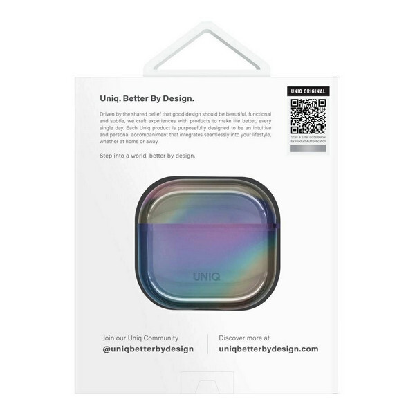 Чехол Uniq Iridescia (holographic) для Airpods 4 (AIRPODS(2024)-IRDMQTZ) Midnight Quartz обеспечивает всестороннюю защиту с очаровательным голографическим дизайном, который ослепляет на свету. Разработанный, чтобы выдерживать падения и царапины, он также поддерживает беспроводную зарядку для максимального удобства. Входящий в комплект карабин позволяет вам прикрепить AirPods к сумке или ремню, чтобы они всегда были с вами самым легким способом.