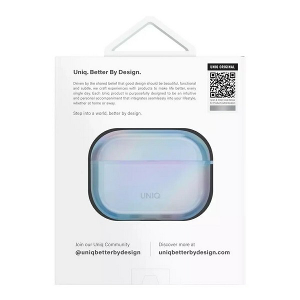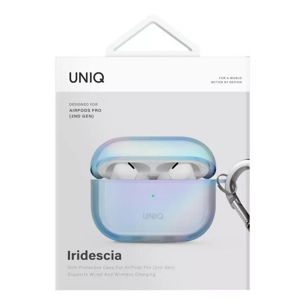 Чехол Uniq Iridescia (holographic) для Airpods Pro 2 (AIRPODSPRO2-IRDEBLU) Eclipse Blue обеспечивает всестороннюю защиту с очаровательным голографическим дизайном, который ослепляет на свету. Разработанный, чтобы выдерживать падения и царапины, он также поддерживает беспроводную зарядку для максимального удобства. Входящий в комплект карабин позволяет вам прикрепить AirPods к сумке или ремню, чтобы они всегда были с вами самым легким способом.