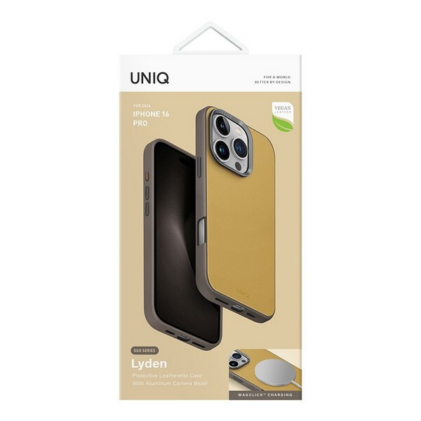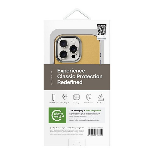 Чехол Uniq Lyden DS MagSafe для iPhone 16 Pro Canary Yellow/Flint Grey (IP6.3P(2024)-LDSCYELFGRY) - двухцветный чехол из высококачественной искусственной кожи, нанесенной на прочную основу. Накладка плотно прилегает к телефону и гарантирует защиту от повреждений, которые могут возникнуть в повседневной эксплуатации. Мягкая микрофибра внутри оберегает заднюю часть смартфона от царапин и дополнительно смягчает удар при падении. Приподнятый бортик вокруг камеры защитит линзы от царапин. Все отверстия для разъемов, динамика и камеры выполнены точно и аккуратно. Толщина кейса не препятствует nfc сигналу. Благодаря встроенному магниту MagSafe вы сможете легко подключить беспроводную зарядку, картхолдер и другие аксессуары с таким креплением. Стильный дизайн дополнен изящной алюминиевой рамкой для объектива камеры и боковыми кнопками. Поставляется в фирменной подарочной упаковке производителя.