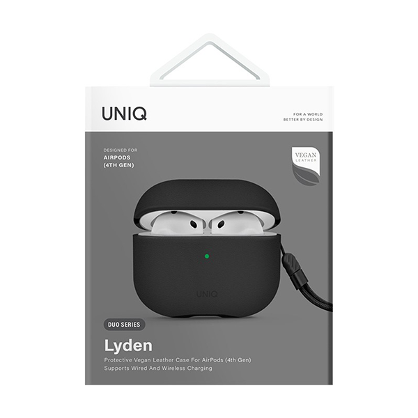 Привлекательный защитный чехол Uniq Lyden для зарядного кейса Apple Airpods Pro 4. Пластиковый каркас покрыт высококачественной искусственной кожей. Конструкция позволяет подключать зарядный кабель, не доставая кейс из чехла. Отверстие для LED-индикатора позволяет отслеживать состояние зарядного процесса. Чехол не препятствует беспроводной зарядке. В комплекте съемный регулируемый ремешок на запястье. Поставляется в оригинальной упаковке производителя.