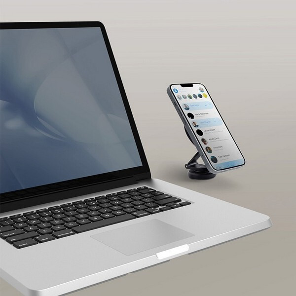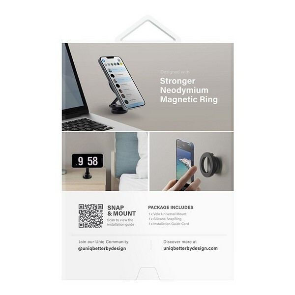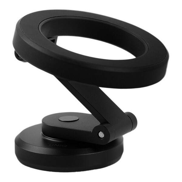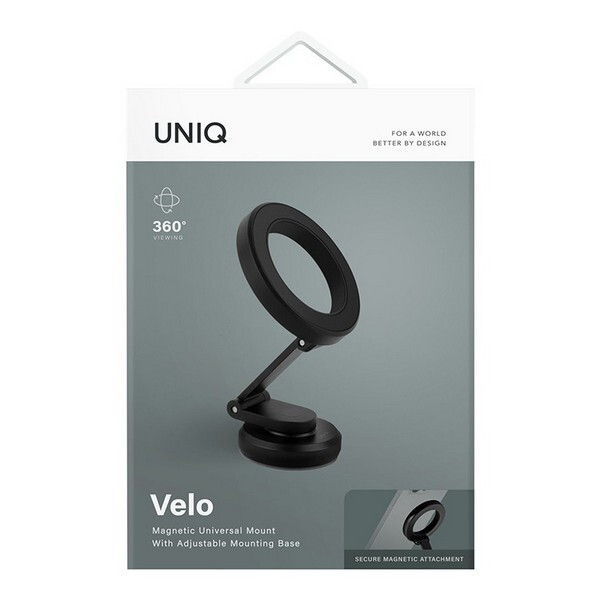 Держатель Uniq VELO Magnetic Universal mount (VELO-UNIVERSALMOUNT) Black - универсальный магнитный держатель для телефона, который поможет комфортно разместить ваш телефон в автомобиле, на письменном столе или прикроватной тумбе. Устанавливается на любую гладкую поверхность с помощью клейкой основы. Телефон крепится к держателю с помощью магнита MagSafe. Для устройств, не поддерживающих MagSafe, в комплекте есть магнитное кольцо для установки на заднюю панель смартфона или чехла. Складная телескопическая подставка позволяет регулировать угол обзора и высоту, позволяя найти наиболее удобное положение для работы со смартфоном. В комплекте есть дополнительное клейкое основание.
