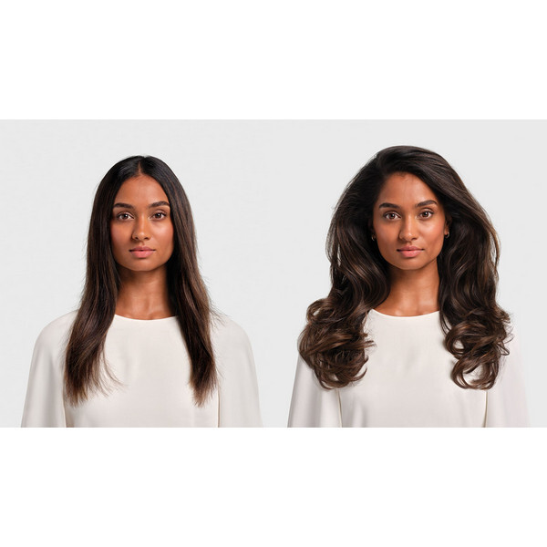 Насадка для непослушных волос cкрывает пушащиеся волосы под длинными прядями даже на готовой прическе с помощью эффекта Коанда.