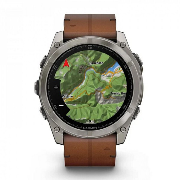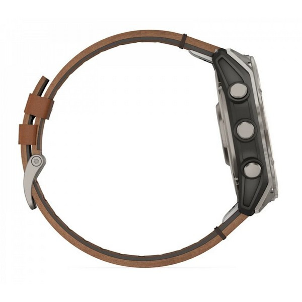 Умные часы Garmin Fenix 8 AMOLED Sapphire 51 мм — титановый корпус, коричневый кожаный ремешок и графитовый силиконовый ремешок