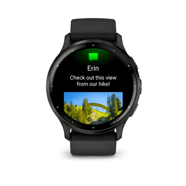 Оставайтесь на связи даже в дороге с помощью часов серии Venu 3. Помимо совершения и приема звонков непосредственно с часов, новинки позволяют пользователям получать электронные письма, текстовые сообщения и оповещения при сопряжении с совместимым смартфоном. Функции безопасности и отслеживания позволяют отправлять сообщение с указанием текущего местоположения пользователя выбранным контактам для экстренных случаев.