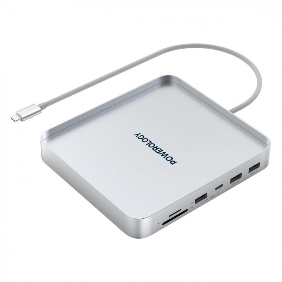Хаб-подставка Powerology iMac 24 USB-C Dock/SSD 10GBPS (PMSSDD) серый сочетает в себе эргономичный дизайн с расширенными возможностями хранения, предлагая пользователям комплексное решение для подключения электронных устройств. Алюминиевая подставка — это хорошо спроектированный, удобный держатель, который обеспечивает устойчивую и удобную платформу с нескользящим основанием, предназначенным для 24-дюймового iMac. Он поставляется со встроенным корпусом для твердотельного накопителя (SSD), который обеспечивает безопасную и защищенную среду для SSD, защищая его от физических повреждений и предотвращая попадание пыли или мусора на его производительность. Этот многофункциональный USB Type-C HUB и подставка оснащены новейшим стандартом USB Type-C и Type-A (версия 3.2/10 Гбит/с), предлагая возможности высокоскоростной передачи данных. Подставка Powerology Ducking и SSD HUB также поддерживают интерфейсы хранения NVMe и SATA, расширяя возможности и обеспечивая эффективное хранение и доступ к данным. Благодаря добавлению слотов Micro SD и SD этот HUB превратился в инновационное и универсальное устройство, обеспечивающее быстрое и надежное хранение данных, документов, медиафайлов и другого контента.