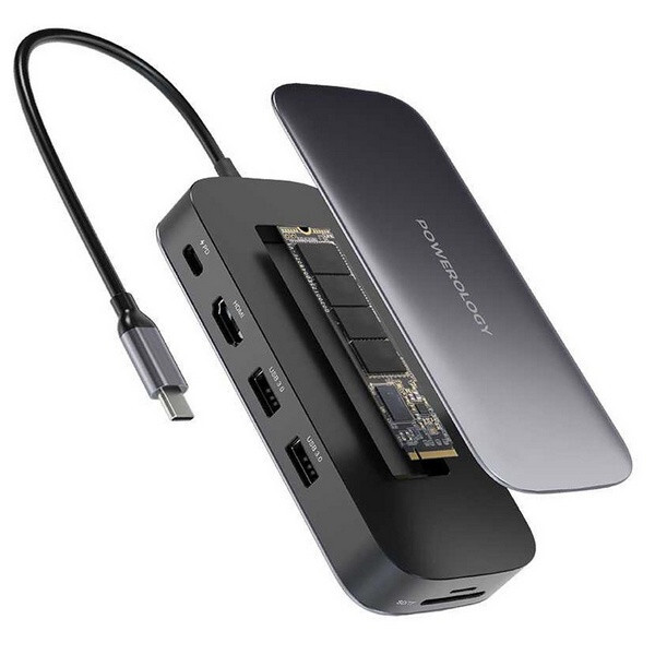 Хаб Powerology USB-C Hub & SSD Drive 256GB PD 100W (PWSDHB256) Gray объединяет возможности подключения и хранения в концентраторе USB-C 256 Гб и SSD-накопителе, что позволяет пользователям получать доступ к дополнительному пространству. Для обеспечения высокоскоростной передачи данных (5 Гбит/с) этот многоцелевой концентратор оснащен двумя USB-A, поддерживаемыми новейшим доступным стандартом USB-накопителей (версия 3.2), одним USB Type-C с возможностью высокоскоростной зарядки (технология доставки мощности PD100W), одним слотом для карт micro-SD и одним слотом для SD-карт. Самой инновационной особенностью этого продукта является то, что он оснащен встроенным твердотельным накопителем (SSD) емкостью до 256 Гб, который обеспечивает хранение данных. Концентратор USB-C 256 Гб и SSD-накопитель Powerology также поддерживают интерфейсы хранения SATA, расширяя возможности и обеспечивая эффективное хранение и доступ к данным. Благодаря добавлению HDMI 4K @ 60 Гц этот концентратор способен обеспечить вам лучшее визуальное восприятие, особенно для динамичного контента, такого как видеоигры или боевики. Благодаря дополнительным факторам безопасности это устройство обеспечивает быстрое и надежное хранение данных, документов, медиафайлов и другого контента.