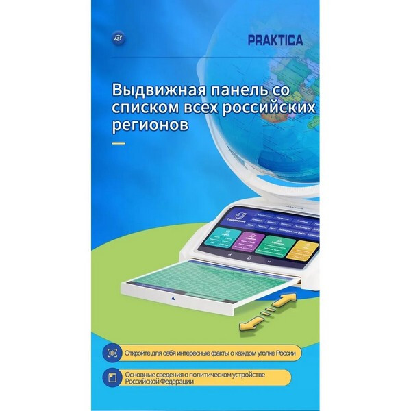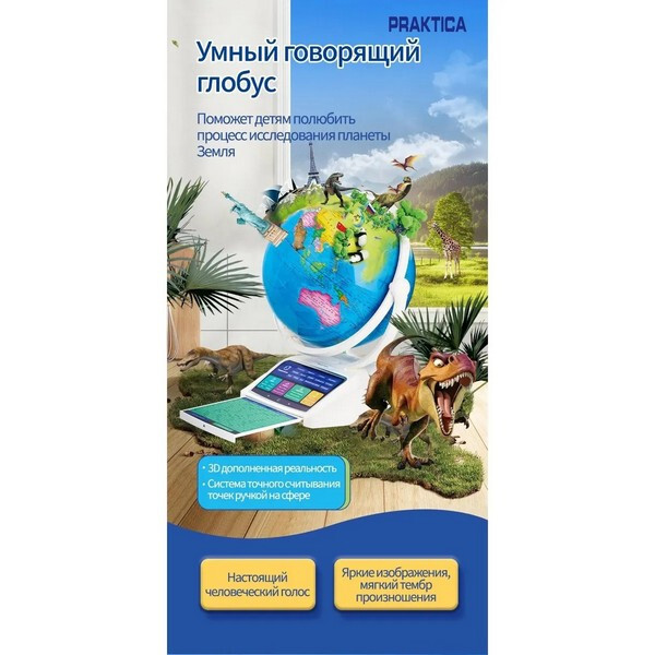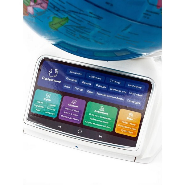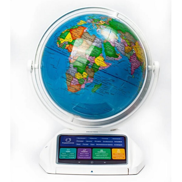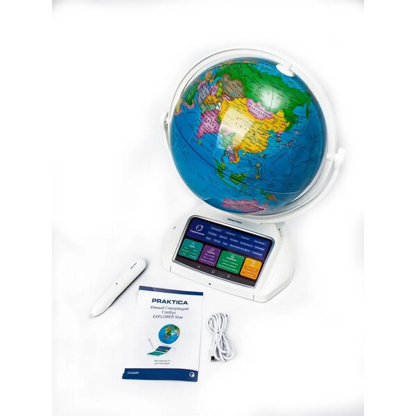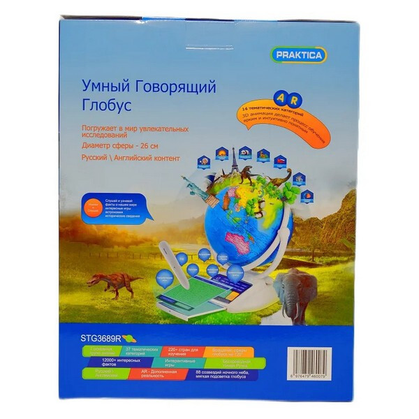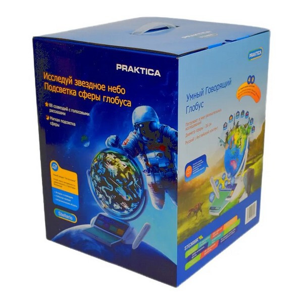 Интерактивный глобус Praktica Stellaris с умной ручкой и звездным небом (STG3689R) - интерактивная игрушка, способная рассказать более 12 000 интересных фактов о нашей планете, знает и делится информацией о 220 странах. Некоторые данные дублируются на английском языке. В ночном режиме на сфере глобуса представлены 88 созвездий, каждое из которых можно выбрать умной ручкой для получения интересной информации. Выдвижная интерактивная панель со списком всех регионах России. Режим дополненной реальности превращает использование глобуса в увлекательнейший процесс обучения, который очень нравится детям. Стиль подачи информации выбран с учётом особенностей детского восприятия звуков. Он не позволит ребёнку заскучать, а разнообразные конкурсы всегда будут вызывать интерес!
