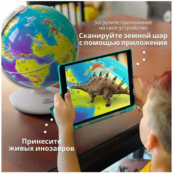 С глобусом Orboot Динозавры Ваш ребенок откроет для себя более 400 невероятных фактов о динозаврах и мире, каким он был 60 миллионов лет назад.