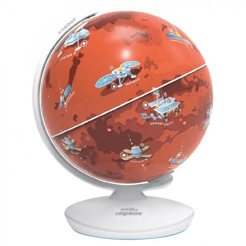 Интерактивный глобус Shifu Orboot Марс представляет собой интерактивный глобус, который рассчитан для использования с планшетом iOS или Android, на котором установлено специальное приложение Orboot Mars. На глобусе нанесены все орбитальные аппараты, посадочные модули и марсоходы, отправленные НАСА, ЕКА, Роскосмосом, ISRO, и многое другое. Он станет отличным подарком для детей от 4 лет и позволит им исследовать таинственный Марс в 3D, изучить его сходство и различия с Землей.