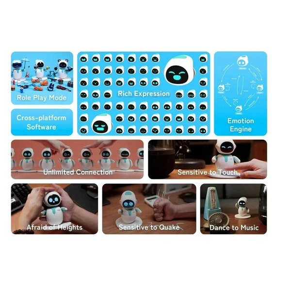 Интерактивный настольный робот-питомец Eilik (голубой) - уникальный настольный робот-компаньон, который обладает эмоциями и индивидуальностью. Данный симпатичный робот-компаньон, будет сидеть рядом с вами во время работы или учебы, взаимодействовать с вами. Это первый робот-компаньон, который оснащен технологией эмоционального интеллекта, которая направлена на то, чтобы «сделать ваш день ярче». Данный робот станет отличным подарком и другом для вашего ребёнка или для вас самих.
