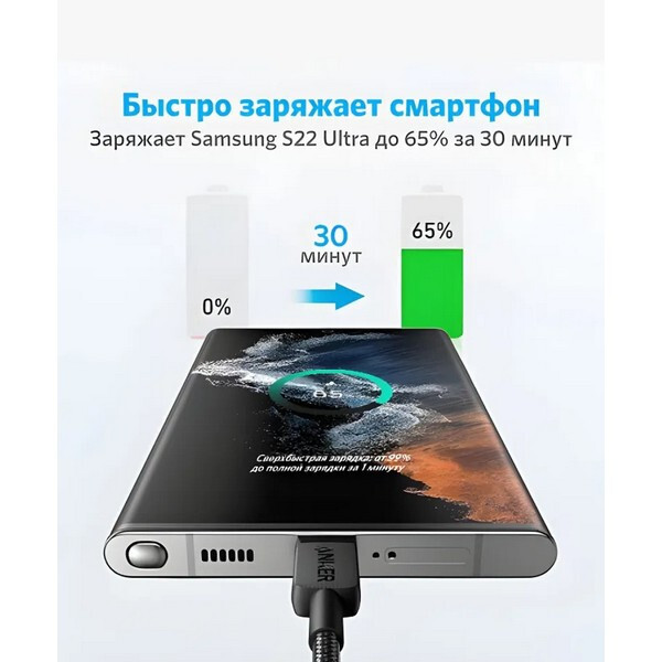 Anker 322 USB-C to USB-C Cable (0,9 метра) — это надёжный выбор для тех, кто ищет качественный кабель для быстрой зарядки и передачи данных, сочетающий в себе прочность, эффективность и универсальность.