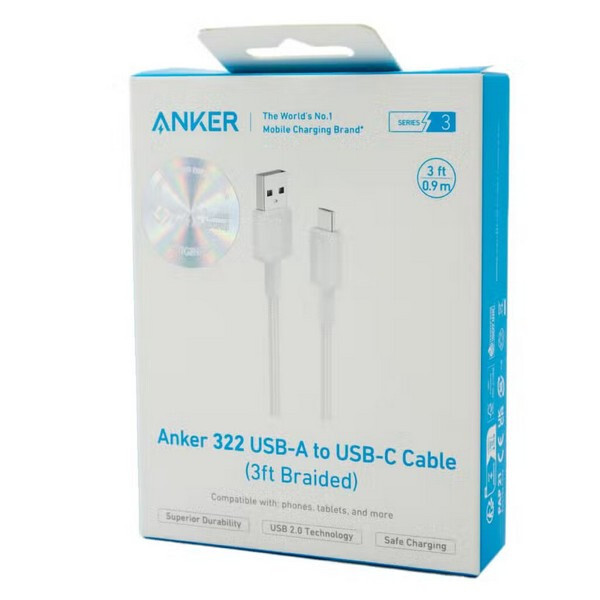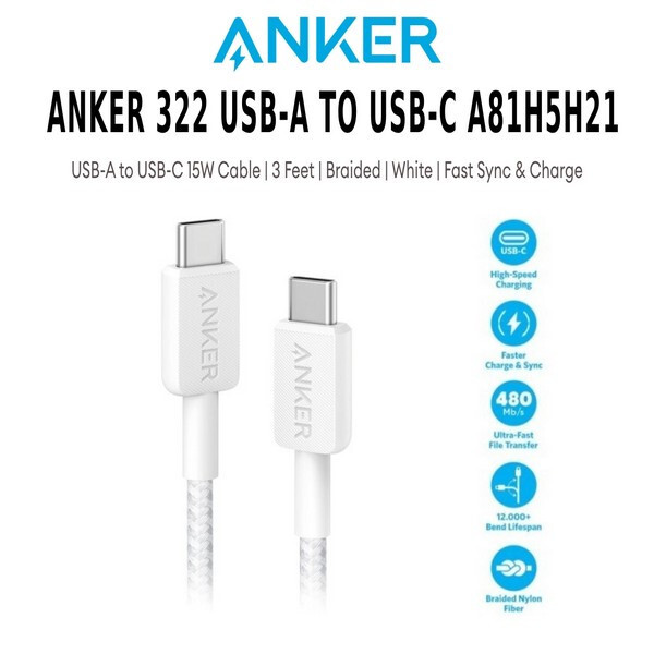 Кабель Anker 322 USB-A to USB-C 0.9 м (A81H5H21) белый
