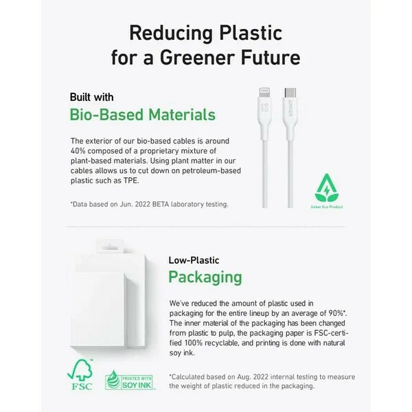 Кабель Anker 542 USB-C to Lightning BIO-BASED 0.9м (A80B1H21.WT) белый – купить за 2 400 ₽ | Мир гаджетов