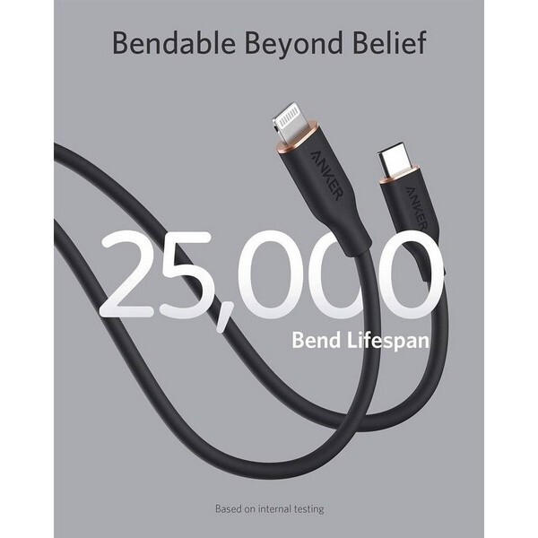 Кабель Anker PowerLine III Flow USB-C to Lightning 0.9м (A8662H11) Black - мягкий на ощупь: вы никогда не чувствовали кабель таким, как этот. Силиконовое покрытие ощущается удивительно мягким между пальцами, когда вы подключаете кабель к устройству.