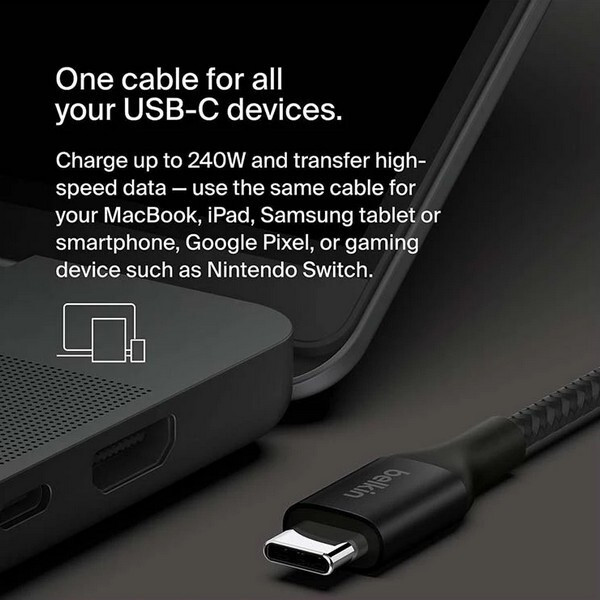 Зарядка до 240 Вт и высокоскоростная передача данных — используйте один и тот же кабель для MacBook, iPad, планшета или смартфона Samsung, Google Pixel или игрового устройства, например Nintendo Switch.