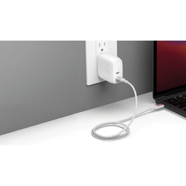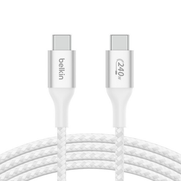 Кабель Belkin Boost Charge Braided USB-C - USB-C 1 м 240W (CAB015BT1MWH) белый, разработанный для расширенного диапазона мощности (EPR) до 240 Вт, совместим с последними рекомендациями USB-IF для устройств USB 2.0 и PD 3.1. Заряжайте свой MacBook, Chromebook, игровой ноутбук, iPad и другие мощные устройства USB-C с помощью прочного кабеля, который обеспечивает безопасную и оптимальную скорость зарядки.