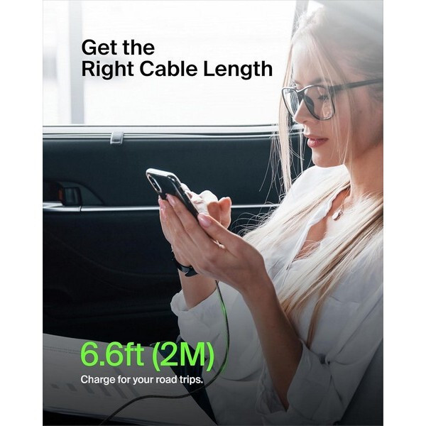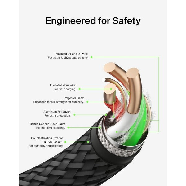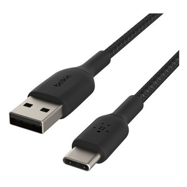 Кабель Belkin BoostCharge Braided USB-A - USB Type-C 2м (CAB002bt2MBK) Black - заряжайте и синхронизируйте музыку, фотографии или данные на устройствах USB-C с любого другого устройства с портом USB-A. Этот надежный кабель идеально подходит для использования дома, на работе или в дороге во время вождения. Он поддерживает стандартную быструю зарядку до 15 Вт, прошел сертификацию USB-IF и имеет высококачественную нейлоновую оплетку с двойной оплеткой.