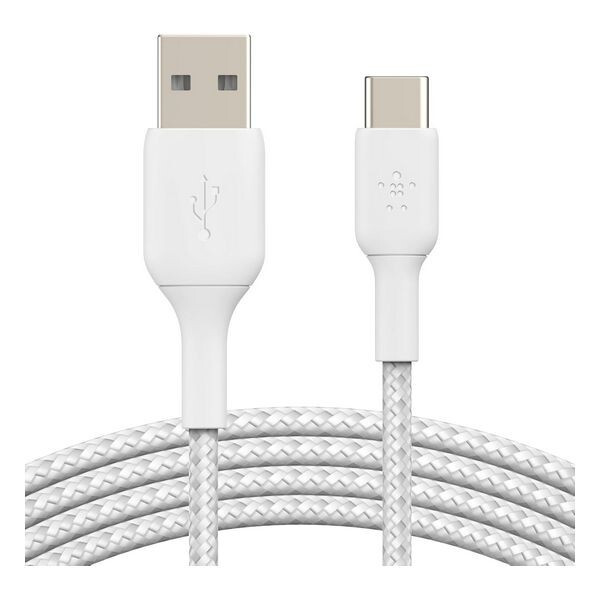 Кабель Belkin BoostCharge Braided USB-A - USB Type-C 2м (CAB002bt2MWH) White - заряжайте и синхронизируйте музыку, фотографии или данные на устройствах USB-C с любого другого устройства с портом USB-A. Этот надежный кабель идеально подходит для использования дома, на работе или в дороге во время вождения. Он поддерживает стандартную быструю зарядку до 15 Вт, прошел сертификацию USB-IF и имеет высококачественную нейлоновую оплетку с двойной оплеткой.