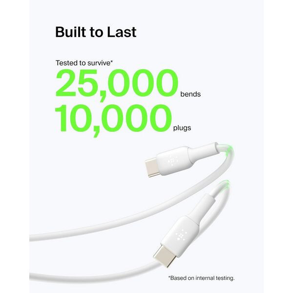 ПРЕВОСХОДНАЯ ПРОЧНОСТЬ: кабель Belkin BoostCharge прошел испытания на прочность до 25 000 изгибов и 10 000 подключений, что делает его более долговечным, чем обычный кабель USB-C.