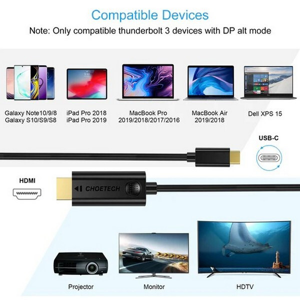 Кабель Choetech USB Type-C to HDMI Cable 3 м (XCH-0030) Black / Черный – купить за 3 400 ₽ | Мир гаджетов