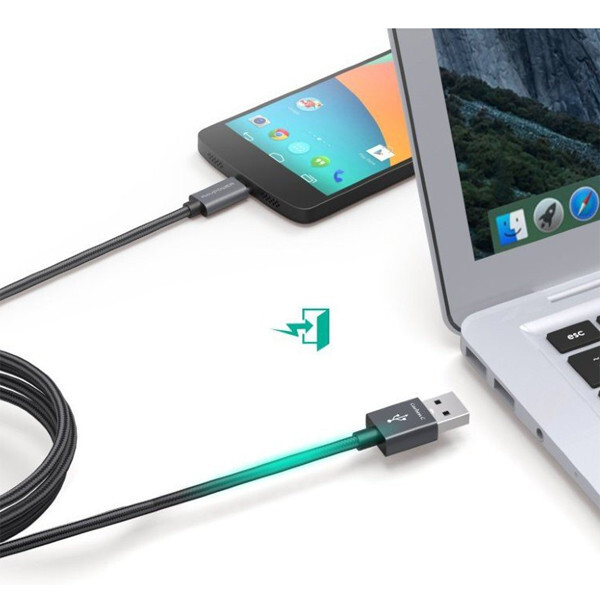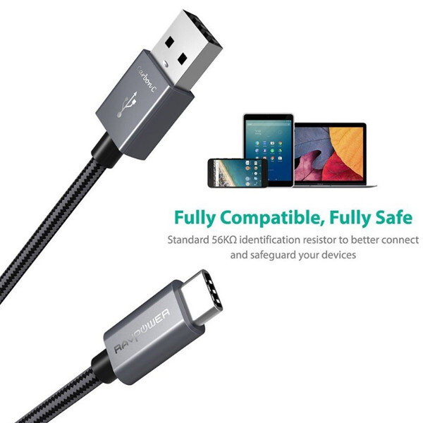 Кабель RAVpower (RP-TPC005) Carbon C Type-C to USB 1.8 м, черный - длина кабеля 1.8 метра, что является оптимальной длиной для комфортного использования гаджета даже во время подключения к кабелю.