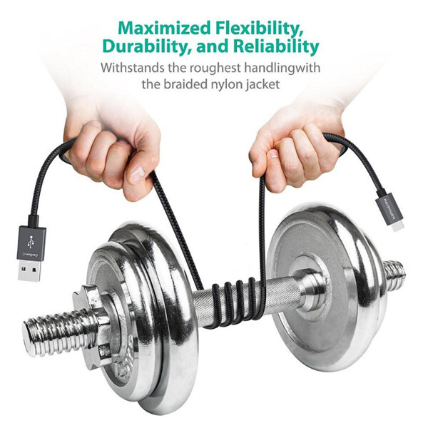 Нейлоновая оплетка защищает кабель не только от внешних воздействий, но и предохраняет его от спутывания.