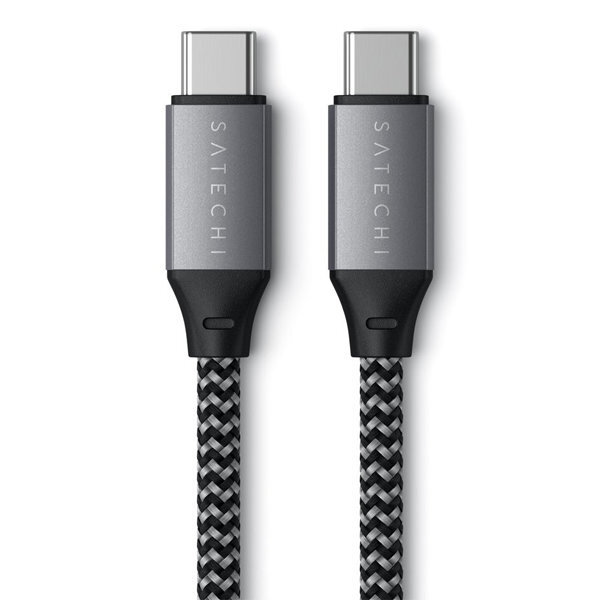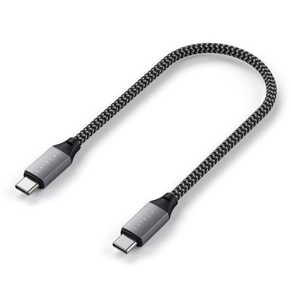 Кабель Satechi USB-C to USB-C 25 см серый космос (ST-TCC10M), отличается прочной конструкцией и меньшей длиной, что делает зарядку на ходу еще более удобной. Идеально сочетается с беспроводным аккумулятором Quatro Wireless Power Bank или настольным зарядным устройством Pro 108 Вт для быстрой подзарядки устройства Type-C.