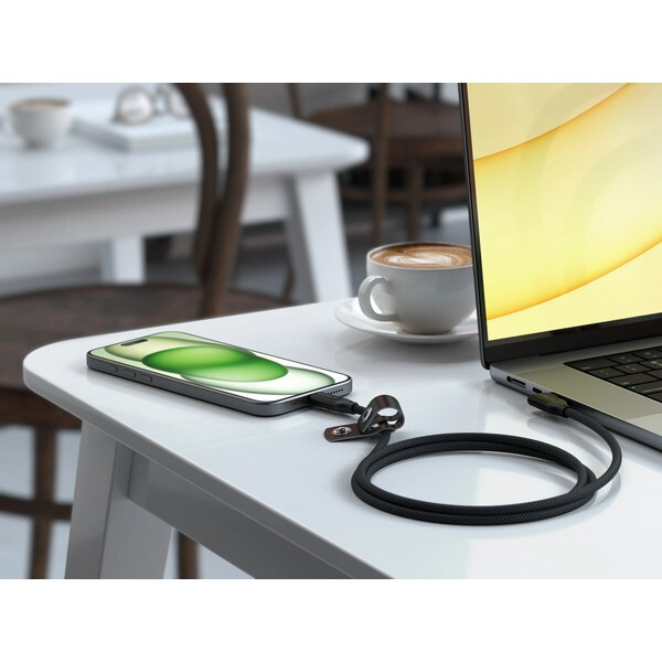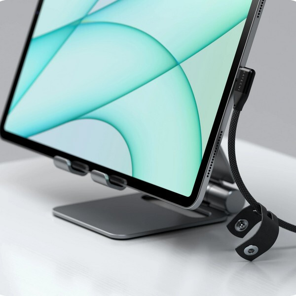 Кабель угловой Satechi Right Angle USB-C - USB-C 1 м 240W PD (AP-YCR100K) черный - новое решение для удобного подключения и бесперебойной работы. Наслаждайтесь мощной зарядкой, молниеносной передачей данных и кристально чистым потоковым видео благодаря мощности до 240 Вт, скорости передачи данных 20 Гбит/с и видеовыходу 4K/60 Гц. Кабель USB-C для передачи данных и зарядки с прямым углом (1 м) имеет прочный плетеный кабель с усиленным шейным креплением, алюминиевые разъемы USB-C и систему укладки кабеля из веганской кожи, что позволяет поддерживать порядок на рабочем месте и заботиться об окружающей среде. Эргономичная конструкция с прямым углом, разработанная с учетом комфорта и эффективности, значительно снижает нагрузку как на кабель, так и на порт USB-C вашего устройства, поэтому вам больше не придется беспокоиться о его изгибах или изнашивании даже в ограниченном пространстве.
