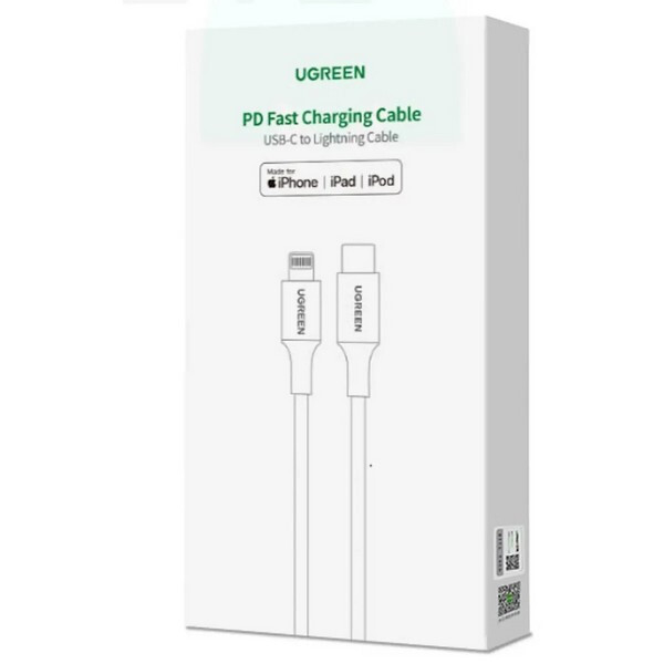 Кабель Ugreen US304 USB-C - Lightning M/M Shell Braided 1м черный (60759) сертифицирован MFi и поддерживает быструю зарядку PD. Внешняя часть корпуса изготовлена из прочного материала и устойчива к изгибу. Поддерживает ток быстрой зарядки 3A и PD. Кабель можно использовать с адаптерами питания USB-C PD и Power Bank с поддержкой PD, для зарядки вашего устройства iOS, быстрой зарядки для iPhone 15 / 15 Pro / 15 Pro Max и старше.
