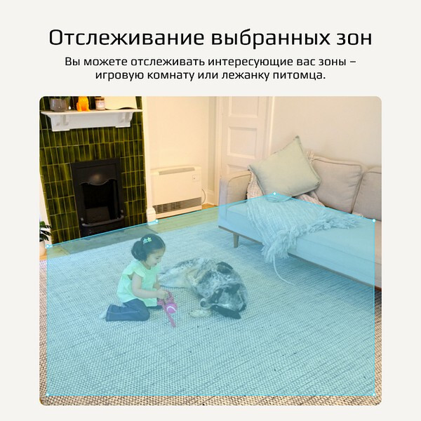 Высокая четкость изображения 2K Full HD позволяет рассмотреть мельчайшие детали. Гибкие настройки позволяют снимать комнату целиком или сфокусироваться на одной зоне - например, игровой или лежанке питомца.
