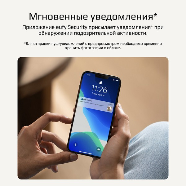 Камера подключается к интернету с помощью технологии Wi-Fi. Для управления камерой используется приложение eufy Security для iOS и Android с гибкими настройками и быстрым доступом к сохраненным видеозаписям.
