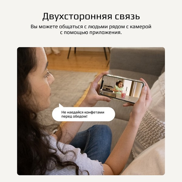 Встроенная система двухсторонней связи позволяет дистанционно общаться с людьми, находящимися рядом с камерой, с помощью приложения. Вы можете заботиться о близких даже на расстоянии.