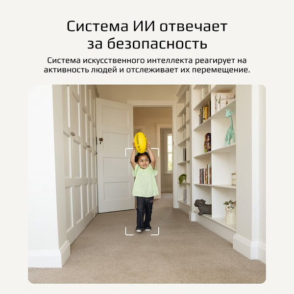 Датчик с фирменным алгоритмом eufy Security мгновенно реагирует на любое движение и отслеживает передвижение людей и питомцев с помощью технологии искусственного интеллекта.