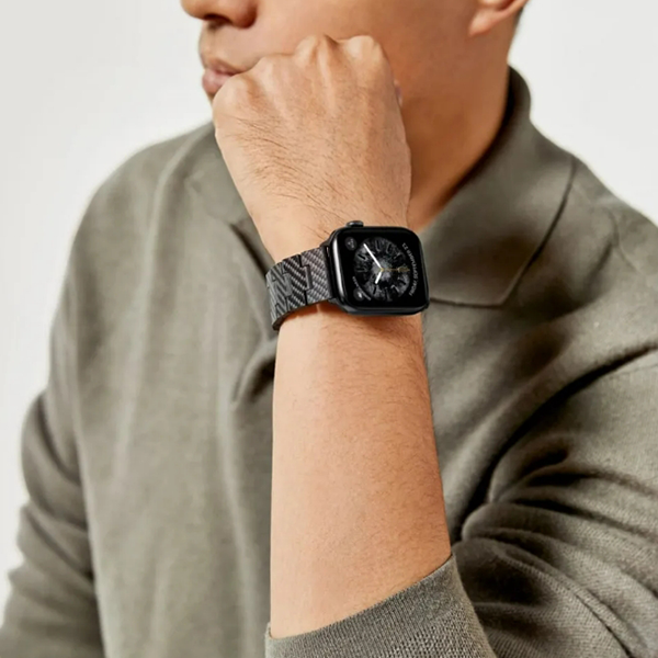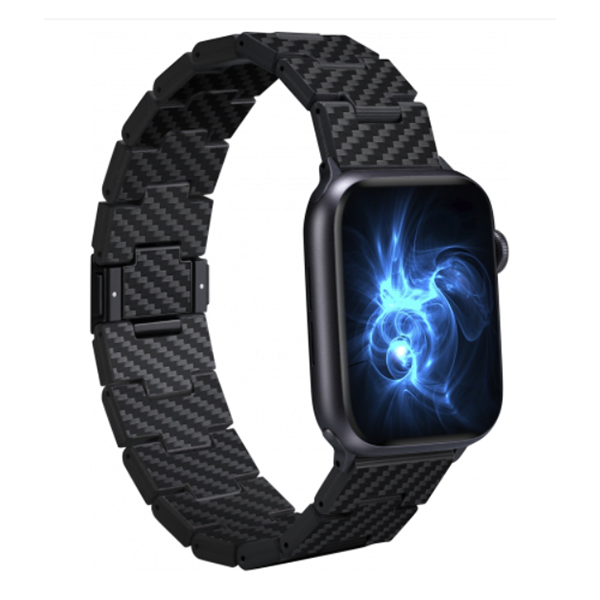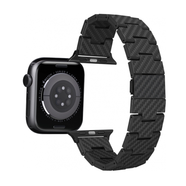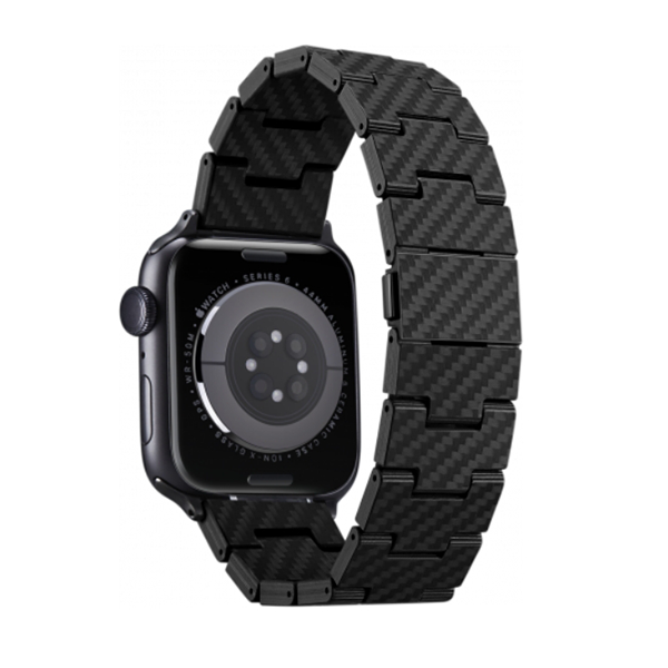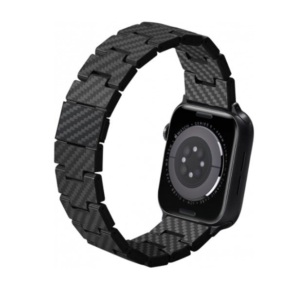 Карбоновый браслет Pitaka Retro для Apple Watch 42/44/45/49 мм (AWB1004) черно-серый - первый в мире ремешок для часов со звеньями из 100% углеродного волокна.