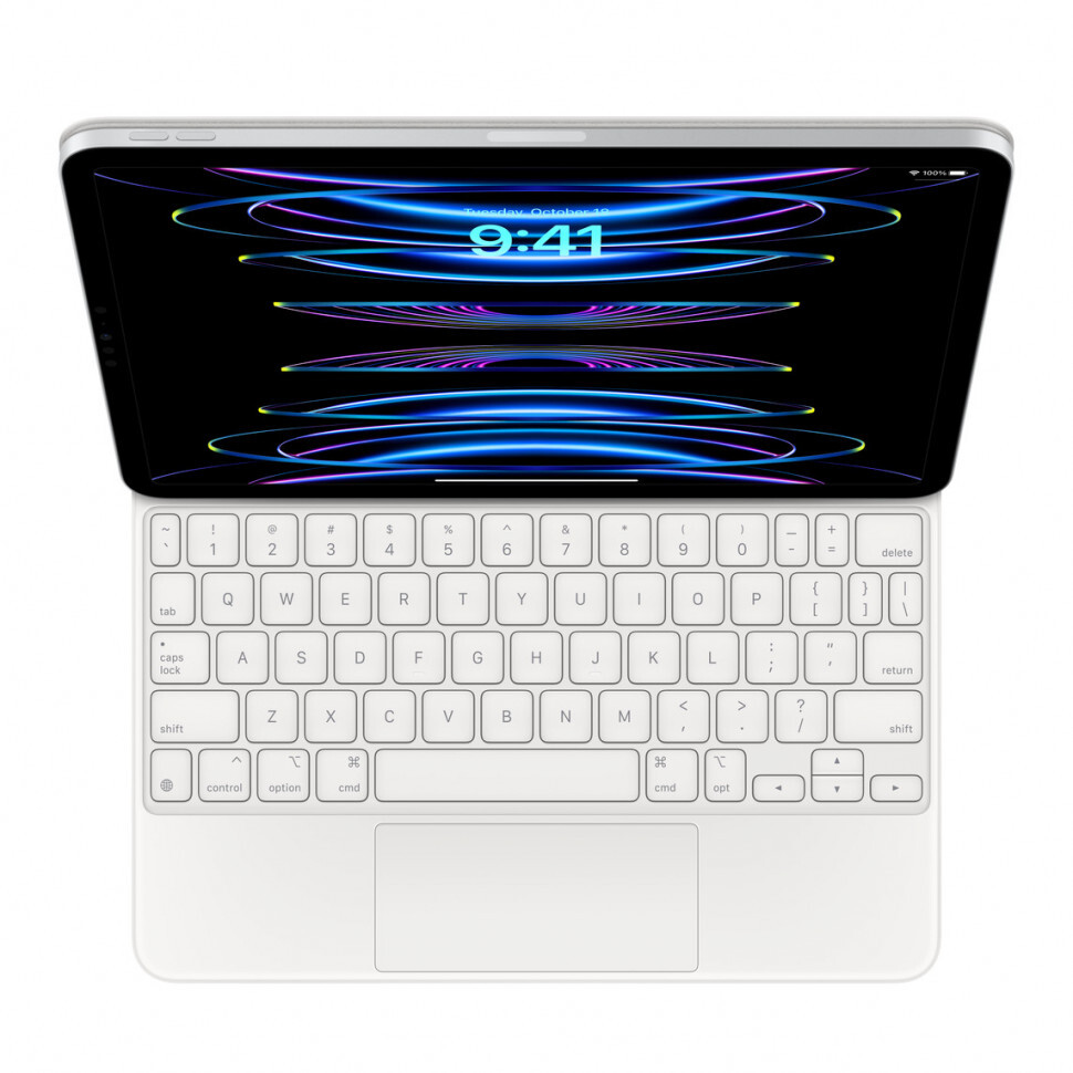 Клавиатура Magic Keyboard - отличный компаньон для iPad Pro и iPad Air. Он предлагает лучший набор текста на iPad и трекпад, который открывает новые способы работы в iPadOS. Он также оснащен портом USB-C для сквозной зарядки и защитой спереди и сзади. Клавиатура Magic Keyboard имеет плавающую консольную конструкцию, поэтому iPad крепится с помощью магнитов, и вы можете плавно отрегулировать ее под идеальным углом обзора. Smart Connector передает данные и питание между iPad и Magic Keyboard. И нет необходимости в сопряжении или зарядке - просто подключите его и начните печатать.