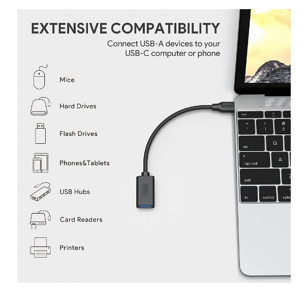 В комплект входят два компактных адаптера, изготовленных из высокопрочного пластика и металла. При передаче данных адаптер обеспечивает скорость до 5 Гбит/с. Переходник отличается технологией защиты от перепадов напряжения и перегрузок, что делает процесс передачи данных или зарядки максимально безопасным, как для самого адаптера, так и для подключенных устройств. Коннекторы и разъёмы имеют специальное антикоррозийное покрытие, поэтому переходник прослужит вам невероятно долго.