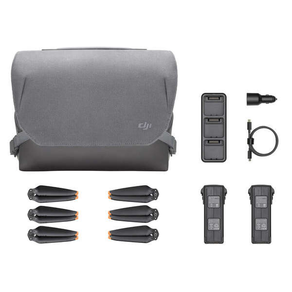 В комплект DJI Mavic 3 Fly More входят две интеллектуальные летные батареи, концентратор для зарядки аккумуляторов мощностью 100 Вт, автомобильное зарядное устройство мощностью 65 Вт, трансформируемая сумка для переноски и пропеллеры с низким уровнем шума.