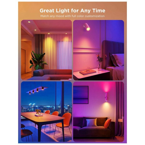 Комплект умных светодиодных ламп Govee GU10 Bulb RGBWW Wifi+Bluetooth 400 Lm (2 шт.) подходит для установки в осветительные приборы с цоколем стандарта GU10. Источники освещения поддерживают плавную регулировку яркости в пределах цветовой температуры 2700-6500K и спектр RGB для создания уютной обстановки в помещении. Пластиковая колба с матовым покрытием обеспечивает равномерное распределение светового потока по всему пространству. Управление устройством возможно по Wi-Fi с помощью приложения на смартфоне и голосового ассистента. Ресурс службы светодиодных ламп Govee GU10 Bulb RGBWW составляет 20000 часов.