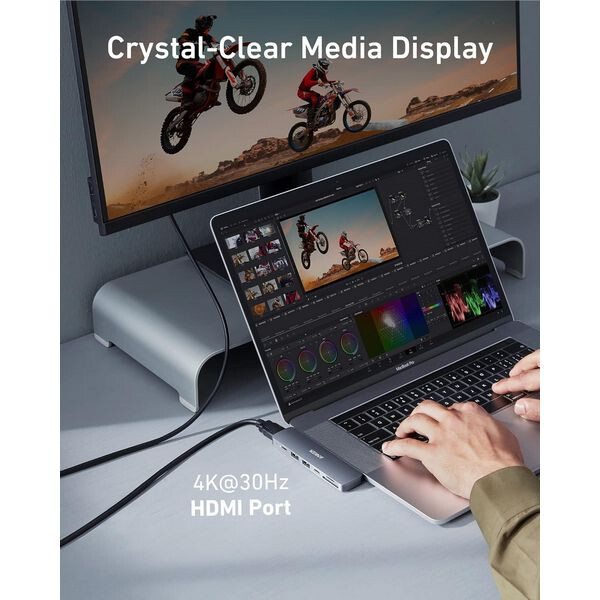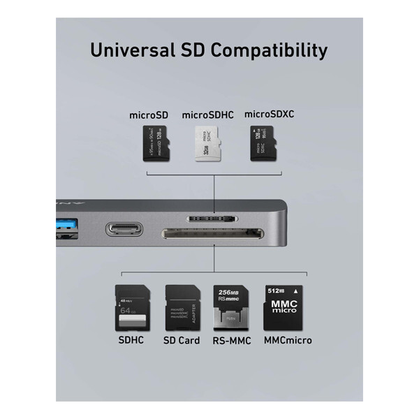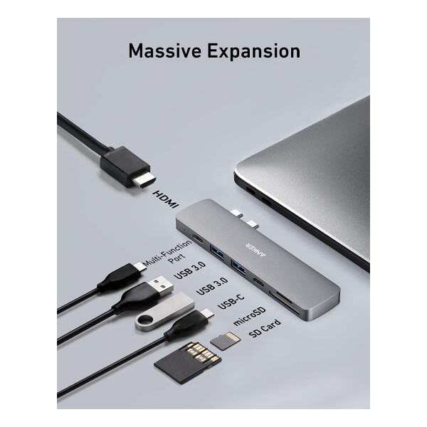 Масштабное расширение: расширьте 2 порта USB-C вашего MacBook на 1 порт Thunderbolt USB-C, 1 порт данных USB-C, 2 порта USB-A, 1 порт HDMI, 1 слот для карты SD и 1 слот для карты microSD — все в одном ультракомпактном концентраторе.