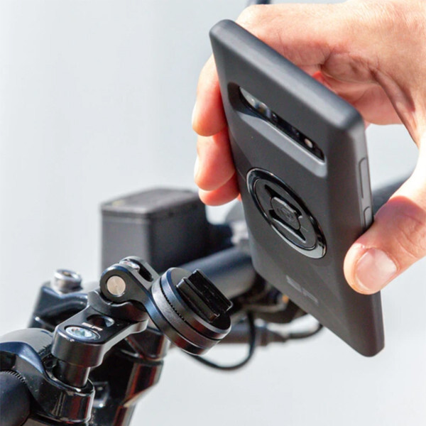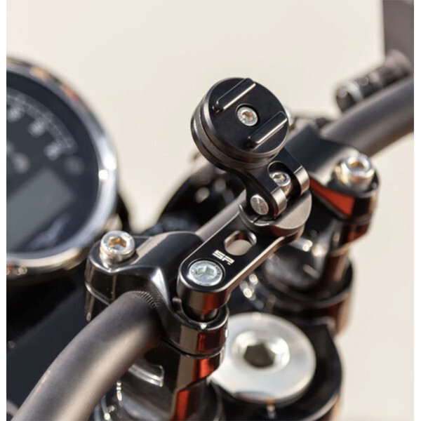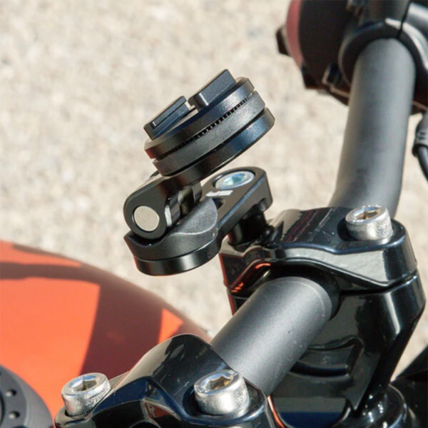 Просто прикрутите это алюминиевое крепление к хомуту вашего мотоцикла, и все, теперь установите ваш телефон в чехле SP Connect (или УНИВЕРСАЛЬНЫЙ ИНТЕРФЕЙС), на крепление и поверните на 90 ° по часовой стрелке.
