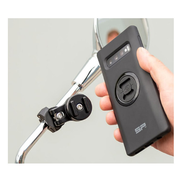 Просто прикрепите крепление к зеркалу вашего скутера или к навигационной перекладине мотоцикла, и вы готовы установить ТЕЛЕФОННЫЙ ЧЕХОЛ SP Connect TM (или УНИВЕРСАЛЬНЫЙ ИНТЕРФЕЙС), поместив его на крепление и повернув на 90 ° по часовой стрелке.