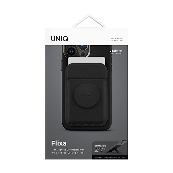 Магнитный бумажник с функцией стенда UNIQ FLIXA Magnetic card holder Pop-out Grip-stand (FLIXA-JETBLACK) Black – купить за 2 200 ₽ | Мир гаджетов