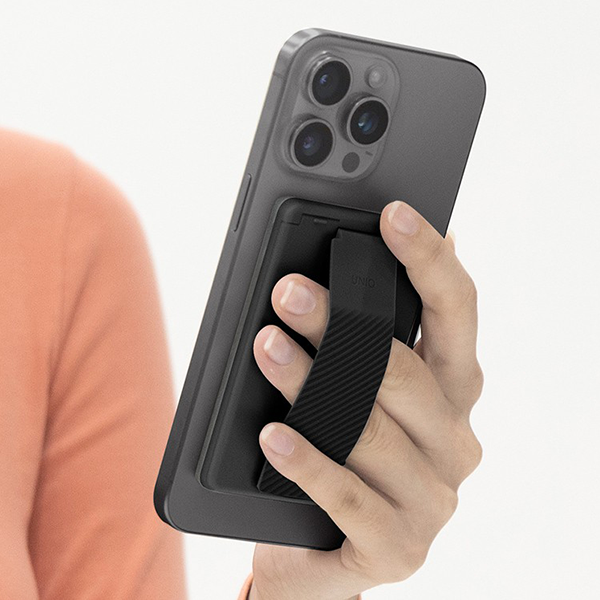 Магнитный картхолдер из пластика с отделением для 1-2 пластиковых карт поддерживает крепление Apple Magsafe. Аксессуар можно прикрепить к задней панели вашего смартфона или установить на защитный чехол, который поставляется с магнитным кольцом MagSafe. Внешняя часть бумажника оснащена ремешком-креплением для руки из эластичной ленты FlexGrip™️. Для устройств с отсутствием MagSafe в комплекте предусмотрено силиконовое магнитное кольцо.
